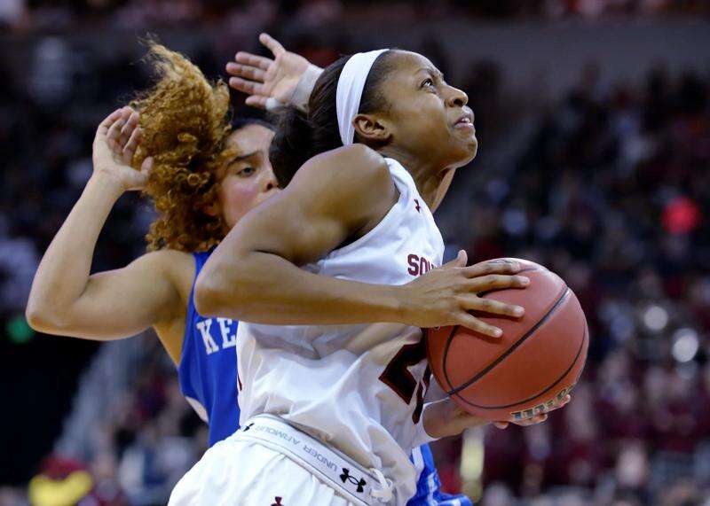 South Carolina and Tiffany Mitchell survived their first real test in the Southeastern Conference, defeating No. 10 Kentucky and Jennifer O’Neill on Sunday and remain No. 1 in the AP Top 25 poll.