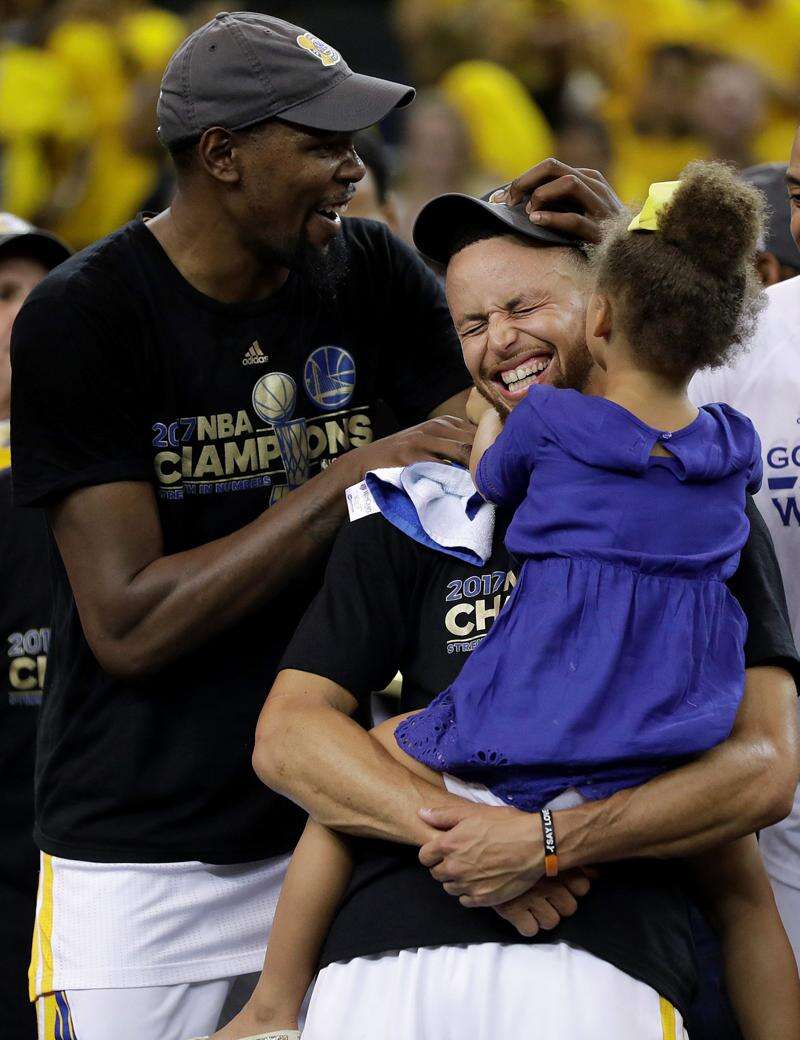 One moment late Monday captured the camaraderie that evolved. As a grinning Curry held daughter Riley in his arms, Durant stood next to them with his left hand on the point guard’s head.