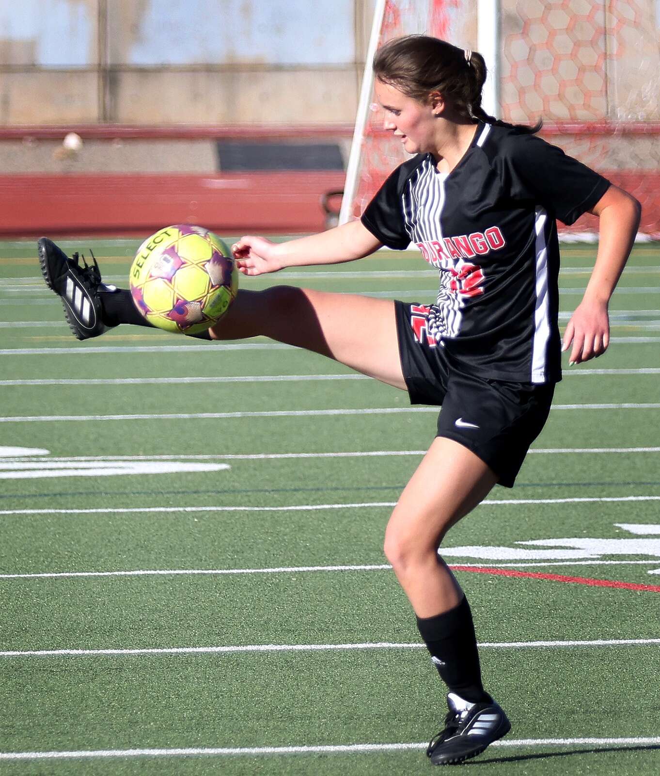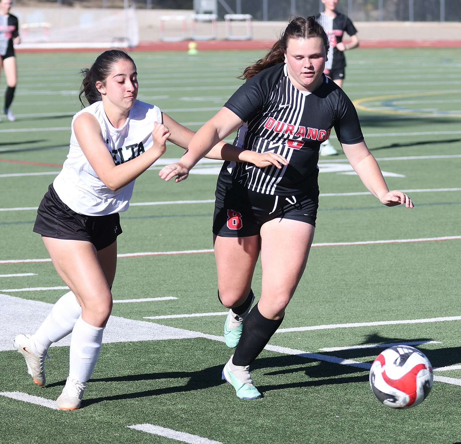 Durango continued to find wide-open space in the midfield thanks to some good passing. Sophomore Emma Pritchett used that space to fire a long-distance shot toward goal. The ball had some good zip to it, but the Delta keeper tried to trap it with her legs, and the ball went into the goal. Durango led 3-0 with 18 minutes left.
