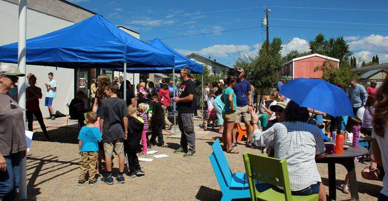 A large crowd gathers Monday at the eclipse viewing party at the Pine River Library. The event included moon pies for a snack, free eclipse glasses and materials to make pinhole viewers.