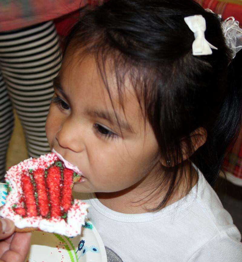 Ember Vigil, 2, samples a cookie she decorated Dec. 1 at Ignacio's annual Taste of Christmas event at the ELHI.