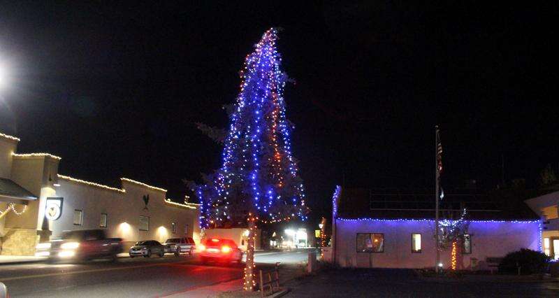 Lights from Ignacio Town Hall, Farmers Fresh Market and the town Christmas tree illuminate downtown on Friday, Dec. 1.