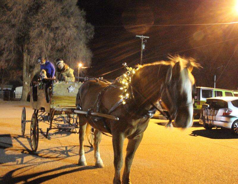 Jamie McDonald of Spring Creek Carriages guides her horse and wagon on Friday night for rides during the annual Taste of Christmas celebration at the Ignacio ELHI.