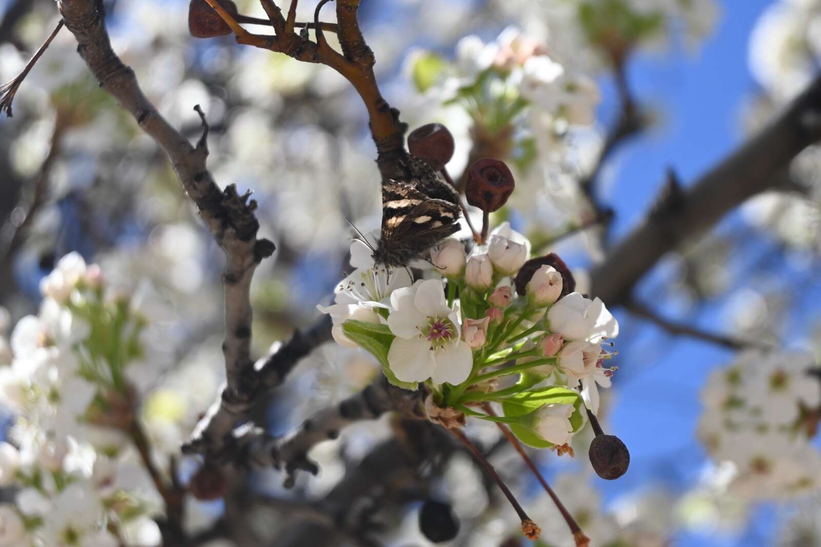 A pollinator visits a Callery Pear tree Wednesday in the 1200 block of Main Avenue. The trees look lovely but smell awful as they bloom in early spring to attract pollinators. (Elizabeth Pond/Durango Herald)