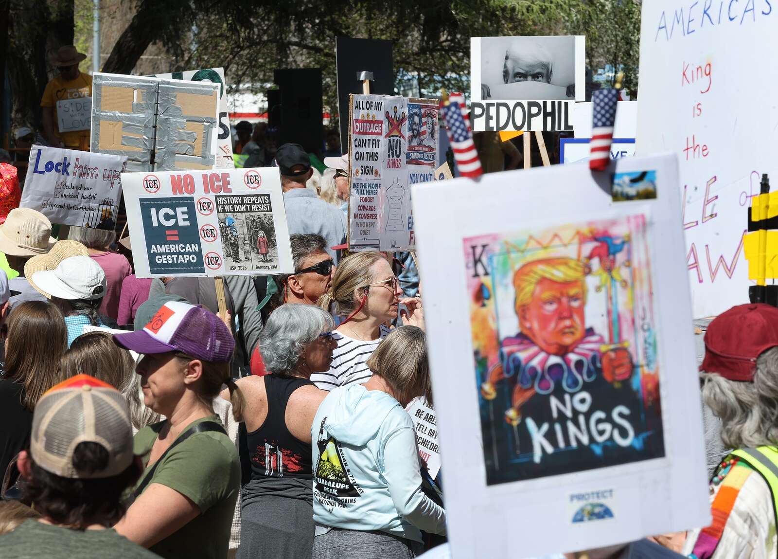Calls for love and solidarity rebounded through Buckley Park on Saturday afternoon where several thousand protesters gathered for a third No Kings march and rally.