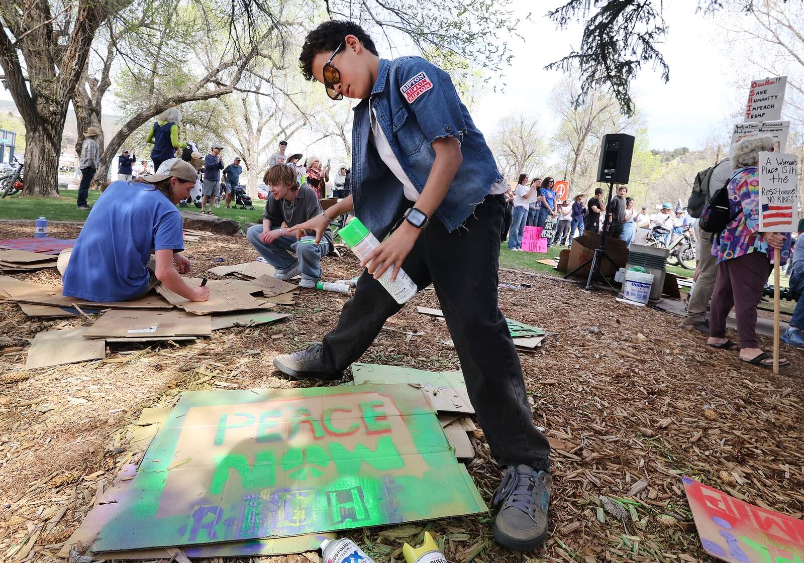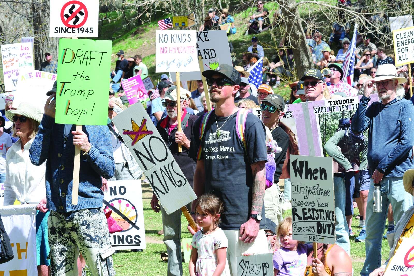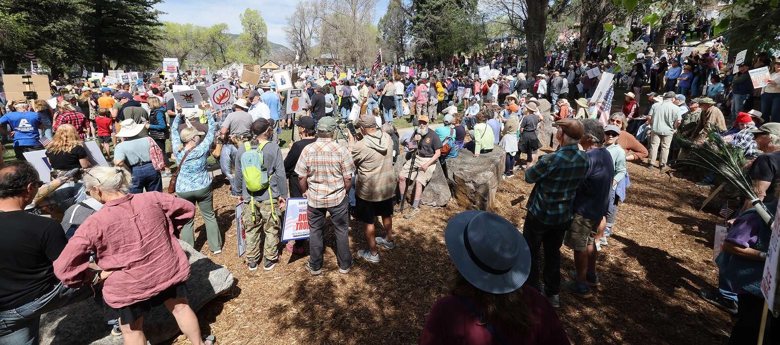 Buckley Park was sparsely populated as of 1 p.m. But over the course of about 30 minutes, hundreds of attendees from the greater Durango area made their way onto the grass, many carrying signs expressing their displeasure with the current administration or demanding accountability.