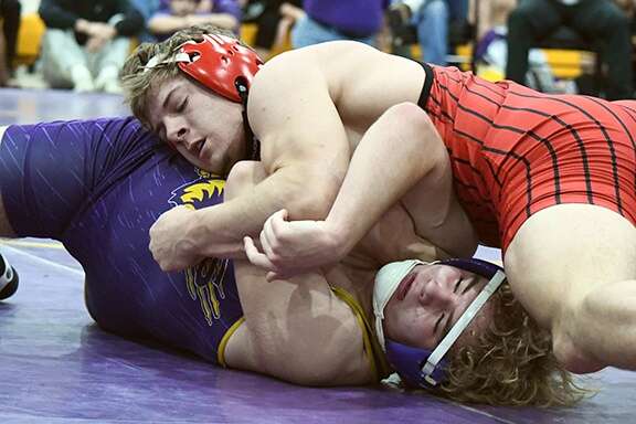 Martindale’s day ended with a 16-10 loss to Gunnison’s Julian Patrick; Christner couldn’t build upon a 3-0 lead against Olathe’s Noah Gray and was pinned 34 ticks into the second period, while Waters (3-2, one tech and one pin) ended up third at 165. Wolverine Max Johnston was the JV champ at 132 pounds.