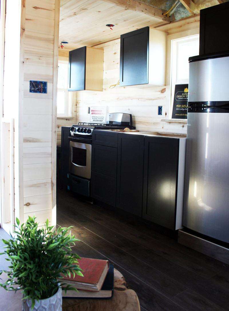 This is the second year BHS construction students have worked on the tiny home, said Curtis Gillespie, an industrial arts teacher. The compact design includes a queen-sized bed in a loft, bay window, Aspen wood interiors and a veneer stone wall surrounding the electric fireplace.The home was designed by students in last year's classes. Students working on the project can earn pre-apprentice certifications to prepare them for work in the construction trades. The home will be sold in conjunction with the homebuilders association.