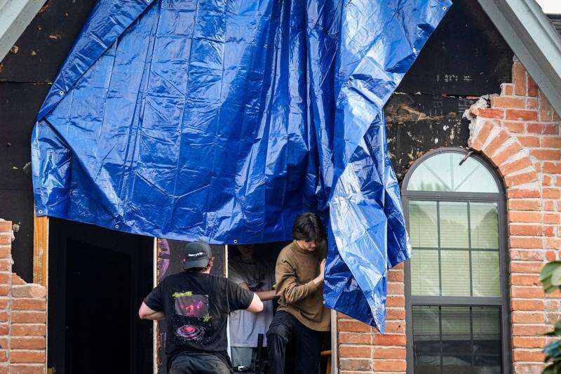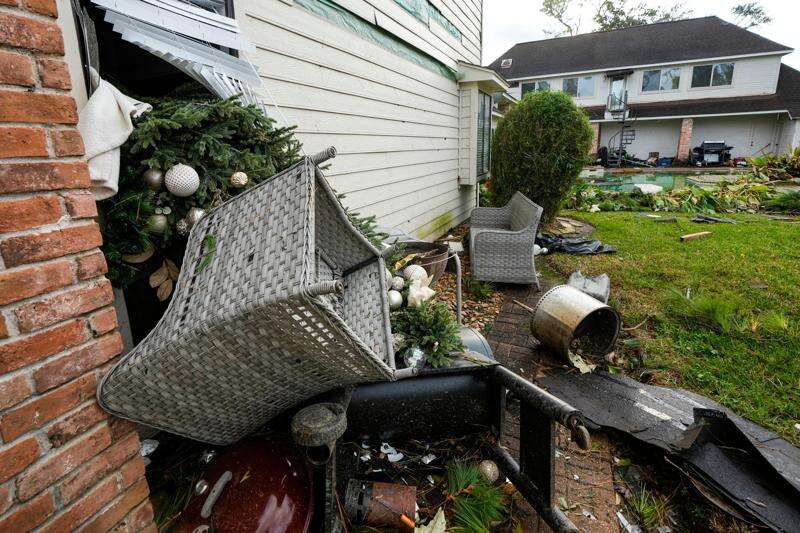 “I had the door and I was trying to hold it shut so that nothing would end up in the house,” Miriam Harris told KTRK-TV. “It was so forceful.” She suffered roof and tree damage, and some of her holiday light display was mangled.
