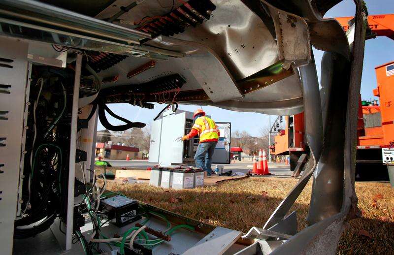 The cabinet – a structure that houses the traffic signal light’s control systems – was damaged when a vehicle hit it at about 2:30 p.m. Sunday. The traffic signal light continued to operate until the cabinet was repaired.