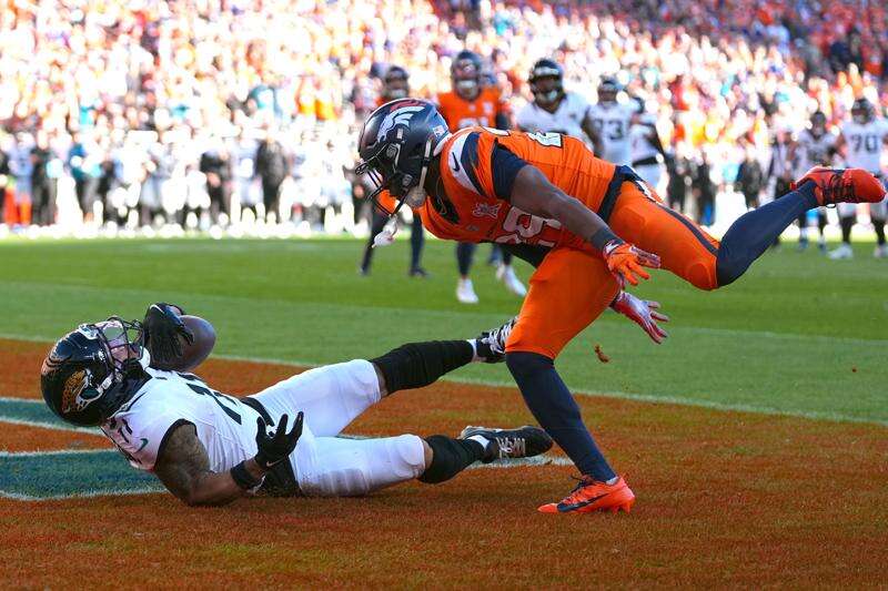 Lawrence was sacked five times by the league's best pass rush — the Broncos have a franchise record-tying 63 sacks on the season — but he still threw for 279 yards with three TDs and no interceptions. Jacksonville was 4 of 5 in the red zone against the league's best red-zone defense.