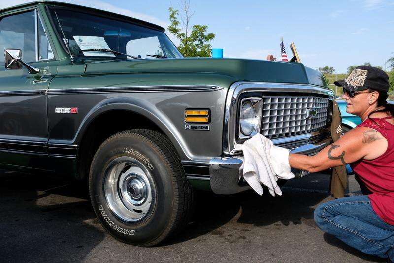 Diana Crawford takes a moment to polish the chrome on her father's 1971 Chevy Cheyenne prior to the ninth annual Sky Ute Casino Classic Car Show on Saturday.