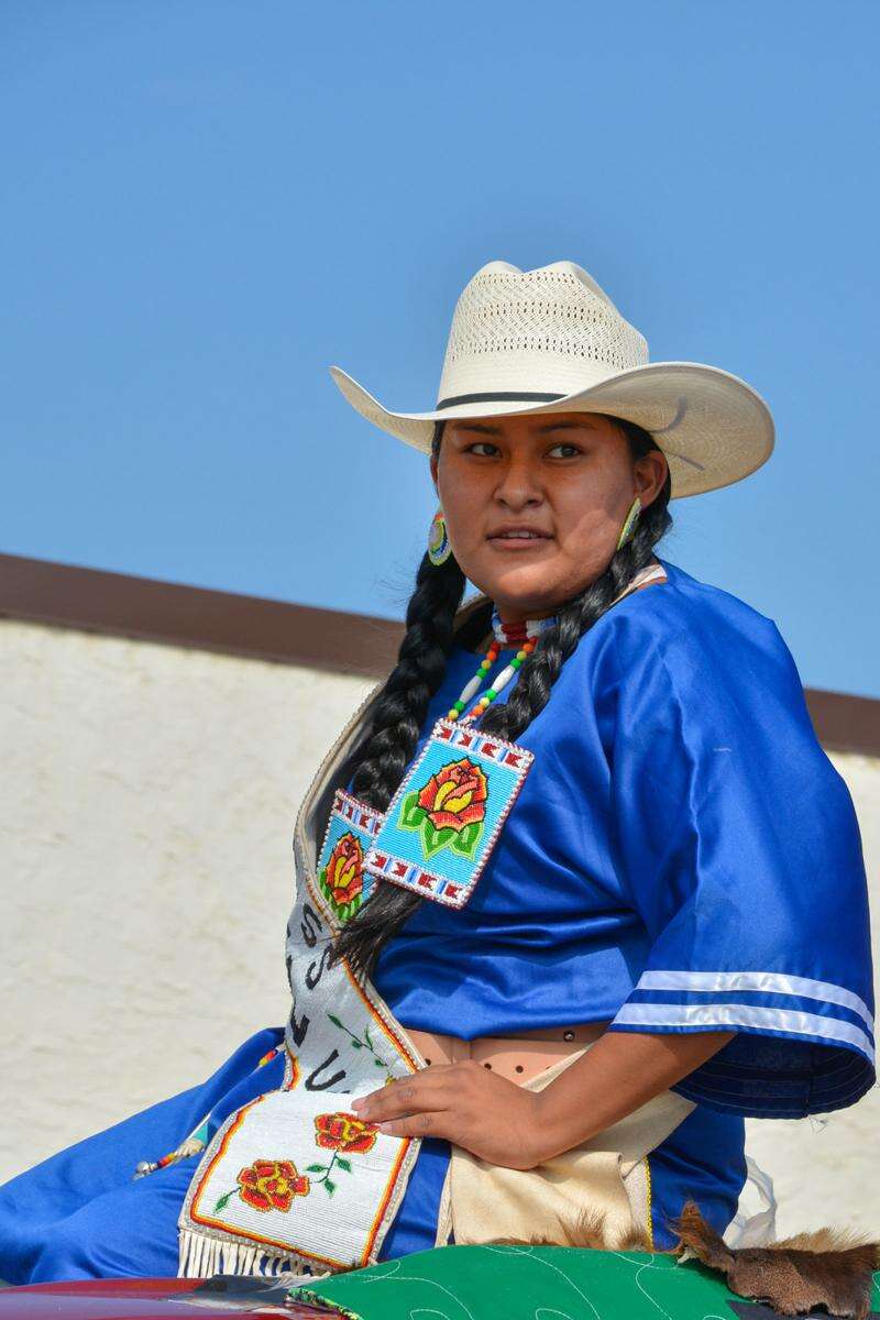 Miss Southern Ute Lorraine Watts greets spectators during the 97th annual Tribal Fair Parade in Ignacio on Saturday.