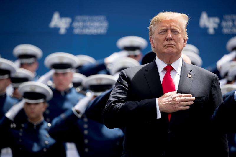 Speaking at the U.S. Air Force Academy commencement, Trump praised the class of “rock-ribbed American patriots” and paid tribute to them for choosing “a harder path and a higher calling” to protect the United States.