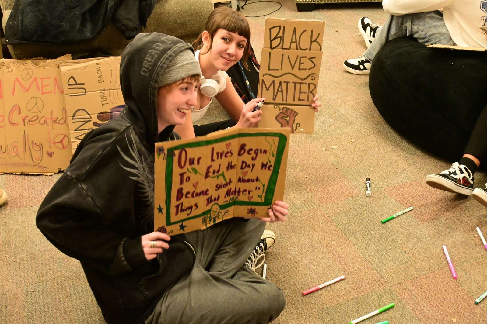 An evening of events, including sign-making, a unity march and a screening of the 2013 movie The Butler was put on by the FLC Black Student Union.