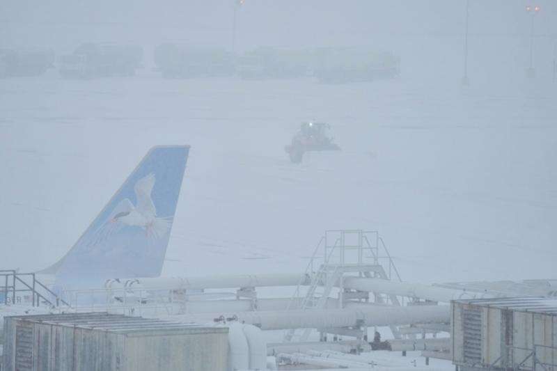 By Sunday afternoon, the majority of flights were canceled at busy airports in the Northeast and elsewhere. LaGuardia Airport in New York closed Sunday afternoon, according to the Federal Aviation Administration. The agency said on its website the busy Queens airport grounded flights until 8 p.m.