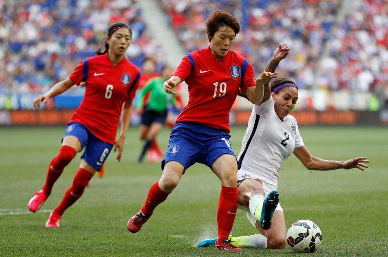 While the U.S. outshot the South Koreans 15-7, the Americans had few good scoring chances. The best was in the 36th minute, when Wambach was 1 yard from an open goal line and couldn’t get her head on Meghan Klingenberg’s cross from the left flank. South Korea goalkeeper Kim Jungmi stuck out her right hand to bat away Carli Lloyd’s open 10-yard shot in the 49th minute after Morgan Brian pulled the ball back.