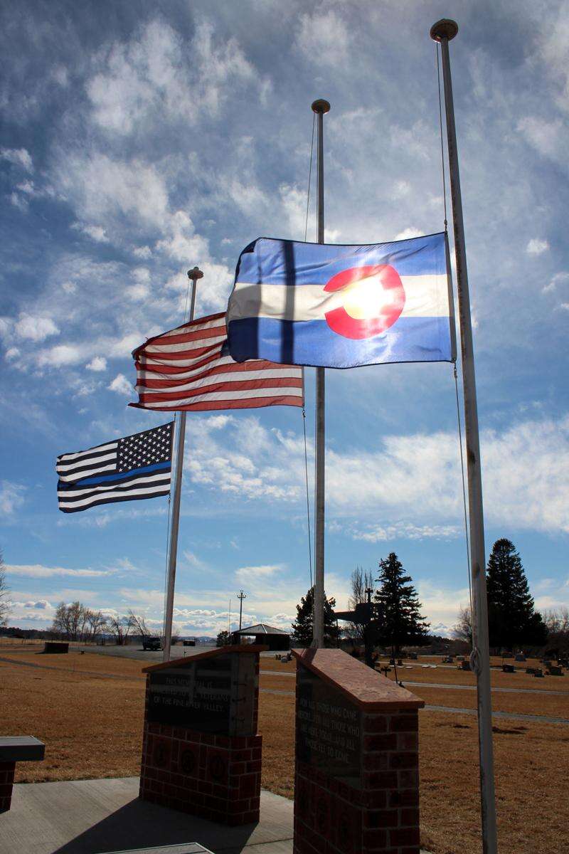 To honor law officers who have been killed in Colorado and across the nation, volunteers at the Pine River Veterans Memorial replaced one of its flags with the black and blue law enforcement flag to fly at half staff earlier this month. The Prisoner of War/Missing in Action flag is flying again at the memorial, which is located inside Pine River Cemetery on County Road 501.