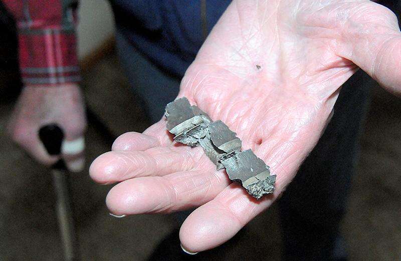 Ferdinando still has a memento from this first mission: a projectile – or piece of flak – that flew a few inches above his head and stuck in the turret. The crew counted 85 holes in their B-24 after they returned.