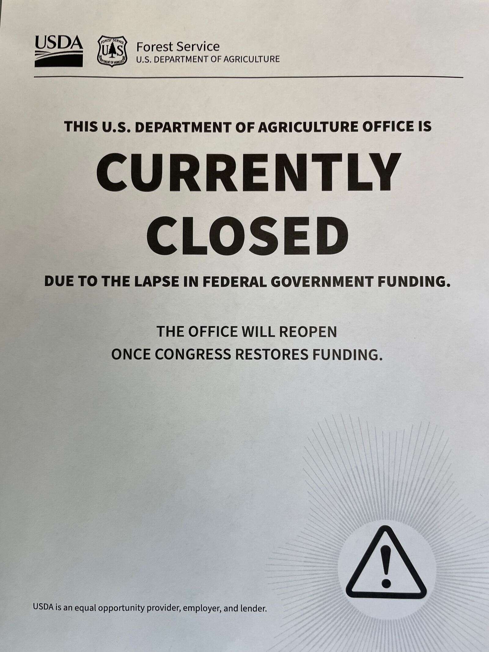 A notice of the Department of Agriculture’s closure due to the government shutdown. (Courtesy San Juan Mountains Association)