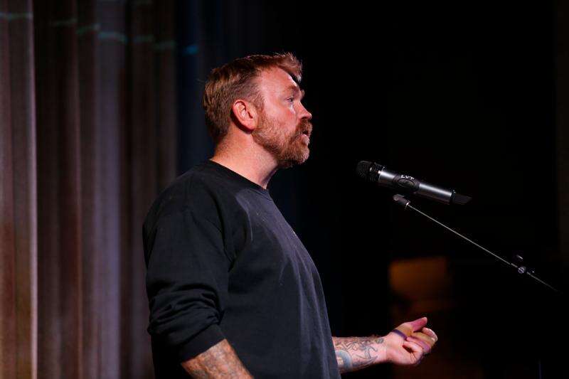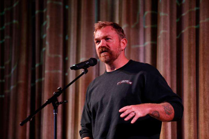Democratic Maine Senate candidate Graham Platner speaks at a town hall in Ogunquit, Maine, Wednesday, Oct. 22, 2025. (AP Photo/Caleb Jones)