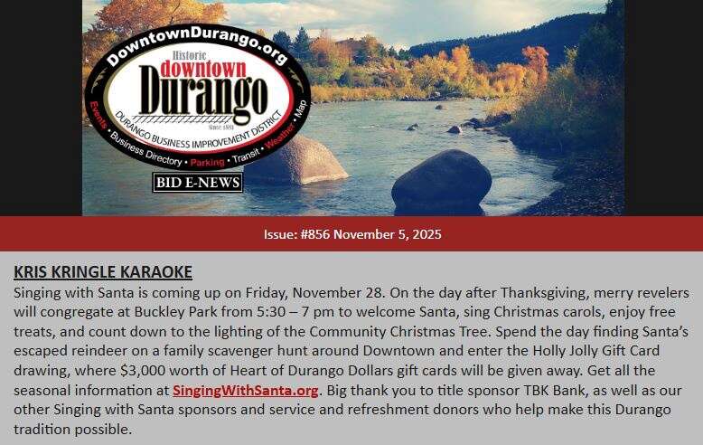 The DurangoDowntown.org website was advertising an event called the “Kris Kringle Karaoke.” We reached out to them about the acronym being KKK and they changed the name to “Singing with Santa.” It even appears as though they’ve rebranded the event and created a new website for it.