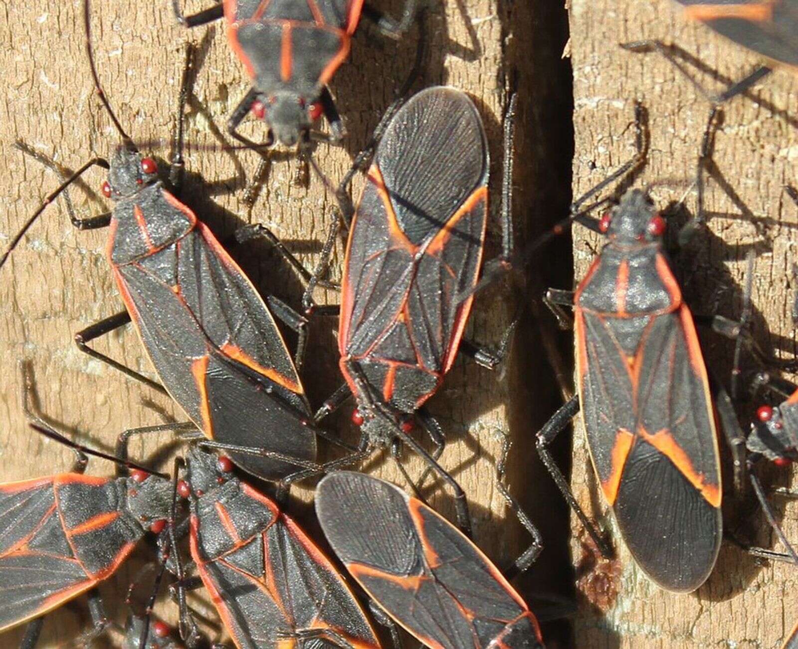 It’s always a good idea to respect your elders, and boxelders are no exception. They are so-called for their primary host, the boxelder tree (in the maple family), where they feed on seeds and new leaves. They also thrive on ashes, fruit trees and members of the maple family. The name for the boxelder tree itself comes from the tree’s soft wood used historically for box pulp, combined with its compound leaves resembling elder trees (which produce elberberries).