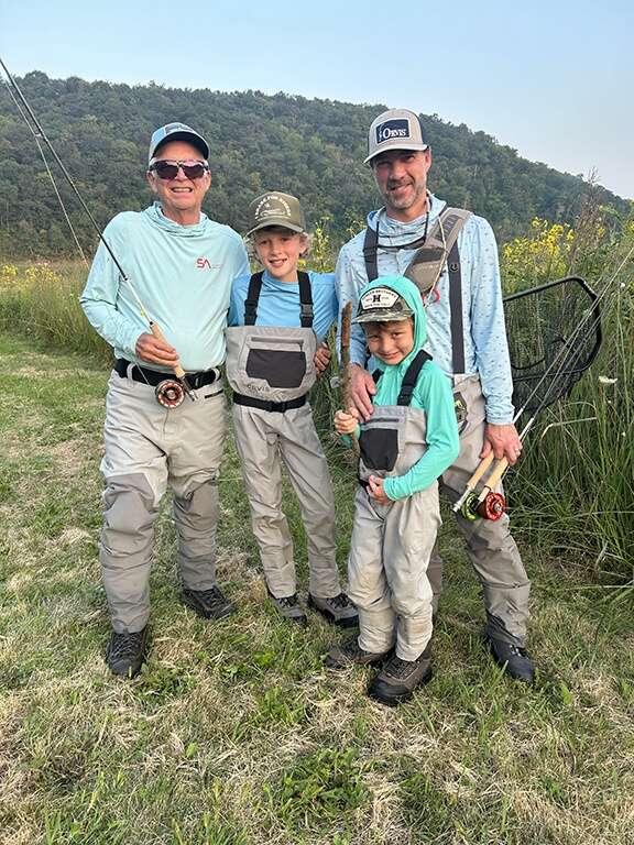 While flyfishing solitude is welcomed, it also forms a shared community. Our family encompasses three generations of fishing on the fly, with the youngest starting at 3 years old. There is a recent picture at our home with me, son Geoff and grandsons Wyatt and Sawyer all dressed in fly garb as we fished in the Iowa Driftless region.
