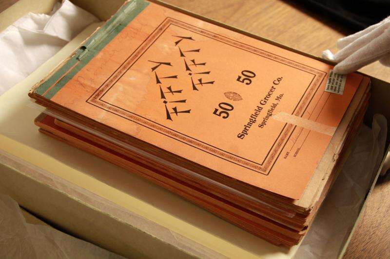 An employee at the Laura Ingalls Wilder Historic Home and Museum in Mansfield, Mo., prepares to handle Wilder’s original manuscript of Pioneer Girl. The original version, written likely in the late 1920s, was written on tablet paper with lead pencil. The South Dakota State Historical Society Press plans to publish an annotated version of Pioneer Girl this fall.