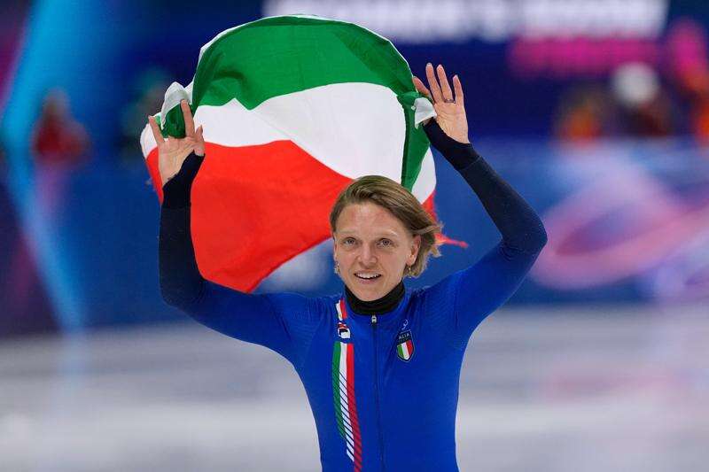 Italian speedskater Francesca Lollobrigida, whose great aunt was movie star Gina Lollobrigida, won her second gold of the Olympics by a tenth of a second in the women's 5,000.