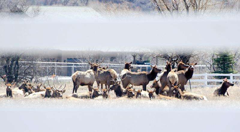 A herd of elk rests in a fenced-in pasture just off U.S. Highway 550 near Animas Valley Elementary on Wednesday afternoon.